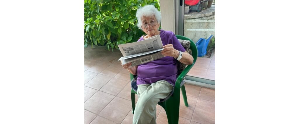 Todos los viernes Rita espera la llegada de NOTICIAS para sentarse en el patio a leerlo, foto gentileza Noemí Courdin ...