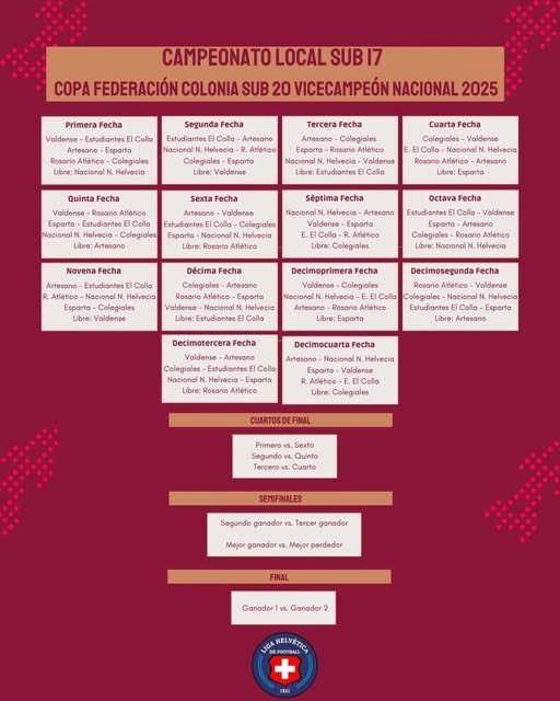 La Copa “Federación Colonia Sub 20 Vicecampeón Nacional 2025” constituye una instancia organizada para el desarrollo del fútbol juvenil en la región, con un calendario que asegura participación y competencia en todas las etapas.