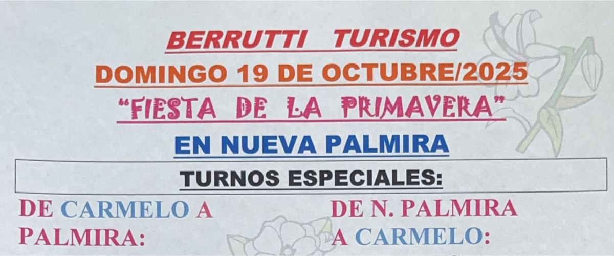 Turnos de línea especiales entre Carmelo y Nueva Palmira, para el domingo 19 de octubre por la Fiesta de la Primavera de Palmira!