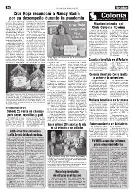 un seguimiento realizado por Cruz Roja Colonia, con cuenta con 12 volunta- la capital departamental. Mañana beneficio en Artesano