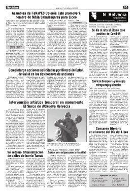 en distintos ámbitos. que son de hierro". Finali- Intervención urbana de ACNuevaHelvecia Libro en este mes de mento del año" explican.