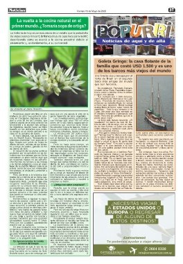El recuento de los platos exóticos ficientes en vitaminas al faltar las fru- Fue construido en el Astillero Ron- Sin embargo, hace tres años, Fer-