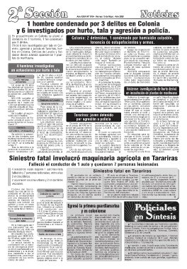 gada del martes 12, en el mión y de todos los obje- años. cina de Información Tácti- Valdense: investigación de hurto derivó