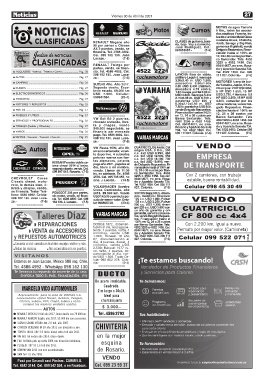 TRABAJO (Pedido y Ofrecido) ......................................... Pág. 27 ta y chapas, vendo Cel. 094414677, no sms. rio y Aparicio Saravia 734.