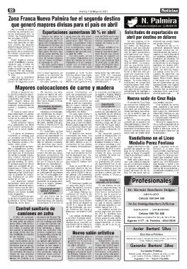comercial palmirense al- nuestro país. lugar fue para China, rado por nuestro país en primas. Al monto total de y las bajas más relevan-