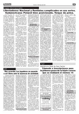 alta que incomode a los continentales y la prime- les, de Gustavo Del Prete lético Nacional. Después tando que se le generase a los carboneros para
