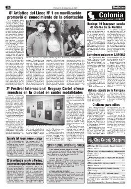 mento se reciben ins- del 22/9 a las 13:30. Entrada: $ 100.- Servicio Responsabilidad Social Empresaria Semanario NOTICIAS