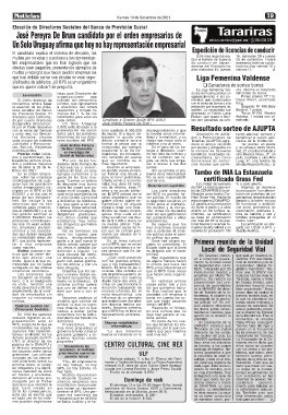 consideraba las organi- mos cinco propuestas al presarios, por lo que con- “Tarariras es una ciudad pienso en la frecuencia