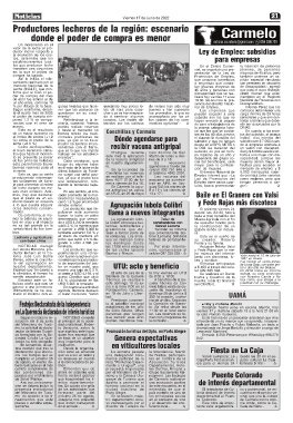 de leche durante los me- ta. En Carmelo la vacu- guay 543 los martes de