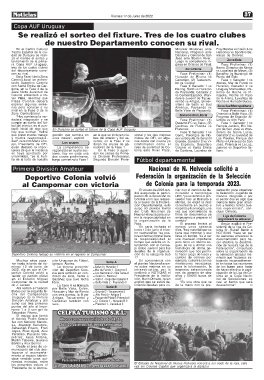 portivo Colonia volvió a nia será también en con- Los Halcones 2 - Villa Teresa 1 confirmó a NOTICIAS el nos da garantía de diez cipación de la Liga de Co-