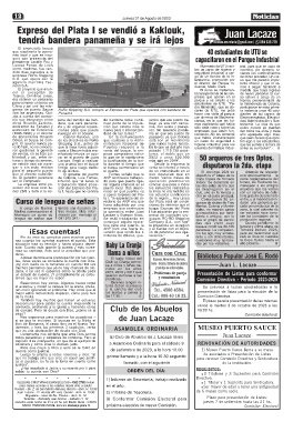 genes de puerto Sauce RoRo Shipping S.A. compró el Expreso del Plata que operará con bandera de cente de UTU, me pidió ra instancia unos 40 estu-