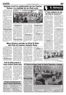 Colonia Suiza ha progra- trabajos realizados. Pos- realiza la 15ª edición de