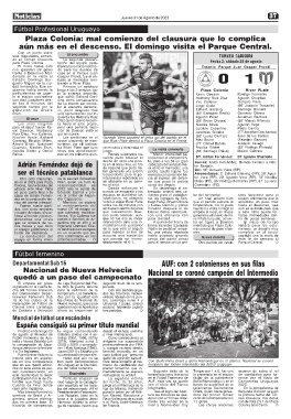 para Plaza Colonia. tación del equipo pata- Fecha 2: sábado 26 de agosto
