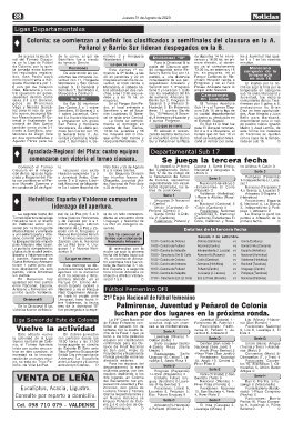 la actividad de la Liga con partidos desde las tiene a los tres primeros Lavalleja (Rivera) 1- Serie D Serie G