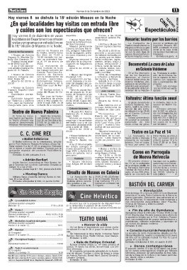 localidades del Departamento se ofrecen • Museo Naval (Hen- espectáculo artístico Pa- Rosario: teatro por los barrios