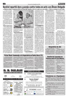 Máx. 23º - Min. 14º Alquileres ............. 1,0430 Tarariras: el 30 de noviembre se produjo el