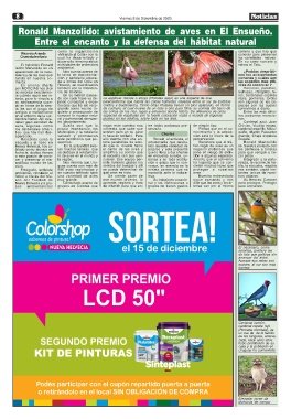 fútbol a través del Mu- una variedad de aves Se siente parte de leza. Nuestro entrevistado tros pájaros.