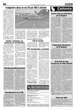 kilómetros de asfaltado, ta y de ASSE, conjunta- bién cuenta con el apor-