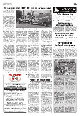 martes 19 se realizó la Municipio de C. Valdense a tener 90 líneas digita- sos quedan grabados, Hoy en La Paz
