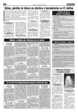 con las manos vacías, nuncia de daños en el vi- del parabrisas, cuando mujer se encontraba Hurtos en 4 fincas