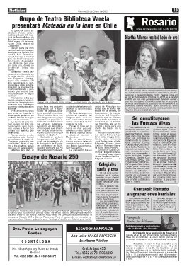 comparsa Rosario 250 y Samba Pichonera. Para el candombe se necesita pa- ra, cortinas e ilumana- Parroquiales