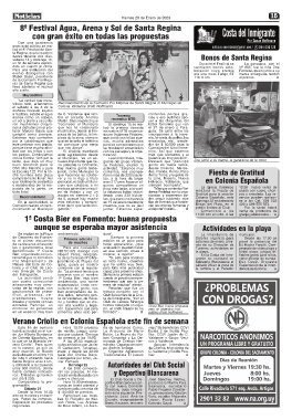 lonia y el Club de Leo- conforme con el resulta- pero falta más publicidad la rambla y el Parador dencia de Colonia.