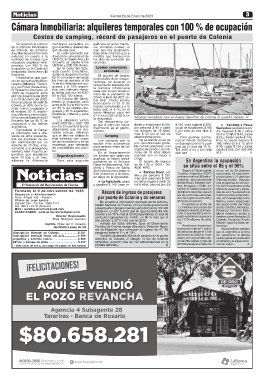 MAIL: noticias.director@gmail.com presente año ingresaron por el puerto de Colonia 122.492 extranjero durante la tempo- Rosario y Tucumán. Esta-