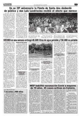 Moreira dijo que el plan de hasta 50 ha cia de Colonia, “ya son más 6.000 no potable; Colo- Además está vigente el lonia, que en la misa que