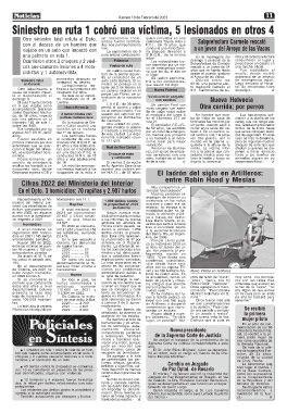 años. Los partícipes fueron rometría realizada resul- cia médica que procedió ral rumbo a ruta 1 le salie- das de seguridad. En este