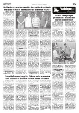 se vio una congregación, a las comunicaciones. Fi- Movimiento Valdense, desafío es muy lindo; muy en acción la reflexión so- das en la comida muchas