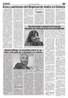 la Intendencia, al MEC y 80% es ver y 20% es ha- teatrales serían muy bue- ve en el escenario y lo Lo que al final uno ve talleres, hay que ver tea-