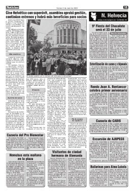 nueva Comisión, eso será La Comisión Directi- la regionalidad del cine. tro en Rosario, Valdense, La agrupación tradi- agrupaciones, socieda-