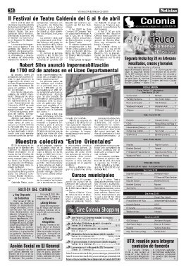 ceo por un monto mínimo munes y para la pintura liceo que serán importan- meabilizarán los restan- UDIC ................................. 1 Parque Brisas del Plata 4
