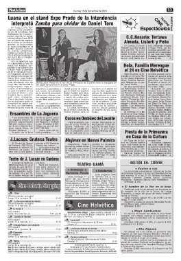 del año mañana sába- Lugar. Entradas: $ 150. ves 21 a las 19:30 la Agrupación Coral Mi- fallecido en diciembre estudiantes 2 x 1.-