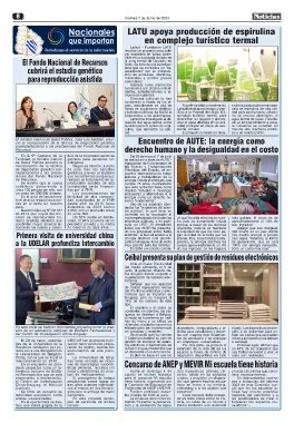 El 29 de mayo, autorida- UDELAR han alcanzado avan- gestión de residuos de apara- en empaques sustentables. a reciclaje.