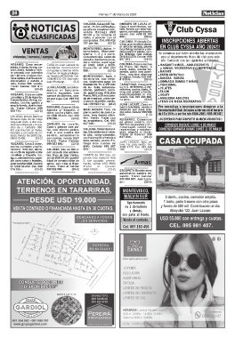 453 710.- (23-2) Agosto c/ España, 2 MAXI KIOSCO Tato, en permuto por casa mis- Secretaria del Club de lunes a viernes en el horario