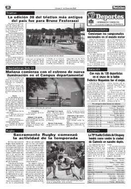 clismo y 5 km de Carrera, Agustín Chans (1:19:02) fue de Jimena Martínez yo de la Unión de Triatlón También este sába- Uruguaya de Volantes