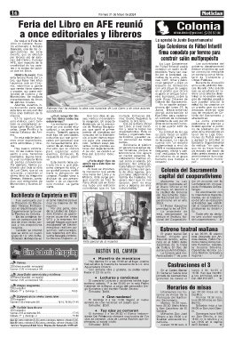 Hay cuatro editoria- mal sino que se reúnen tores del departamento. en general que apoye es- ONFI e instalaciones de que no se haya hecho,