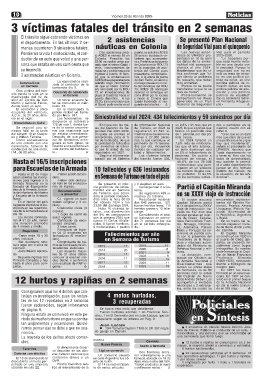 cripción en las reparticio- Credencial vívica (3 Hubo 10 víctimas fa- heridos graves y 10 falle- viaje de instrucción, tra- Uruguaya, Policía Na-