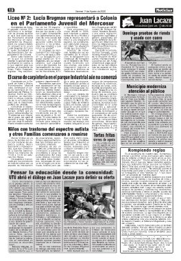 local”. laboral. go a los referentes y direc- ción pueda ir volcando su Juan Lacaze - D. Acosta 401 esq. Gardel - dom. H. 10:30