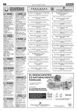 SÁBADO 2 Y DOMINGO 3 Estación de servicio de turno: Falleció en la Paz del Señor el día 25 de julio de 2025. Falleció en la Paz del Señor el día 29 de julio de 2025.