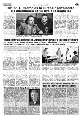 plantea el futuro. La per- muy bueno, muy auspi- miento y la extensión se tes se exige un nivel aca- talaciones de la Udelar en Flora. La concreción del