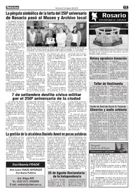 de la ciudad. Como sue- canía con dos hitos loca- El profesor Daniel Ló- la pérgola representada Rotary Club Rosario la localidad.