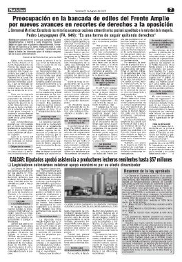 ductores lecheros que do, porque se va a volcar una ley que otorga asistencia económica a los produc-