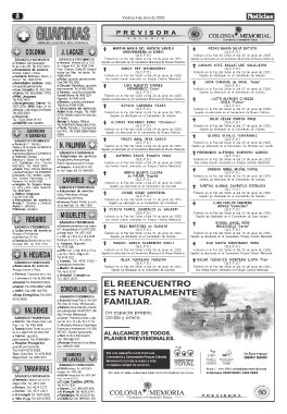 Farmacia: Del Sacramento Farmacia: Rubens (5/7 al 11/7) Sepelio ya efectuado en el Cementerio Municipal de Nueva Helvecia.