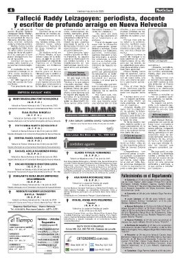 Continuó con sus es- prana edad fue votante de los medios locales y la ner con su trabajo coti- lidad humana, de su res- Raddy Leizagoyen