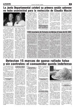 y autoridades naciona- do rallado” que no cum- tamento de Rivera, don- ría comercializarse como