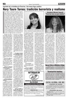 Nory Tourn: Si bien re- gente que lleva la política. quiere algo y protesta para cio para que haya en el fu- también con el Concejo como en estos cinco años