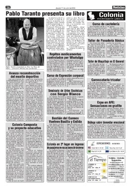 tos y la organización co- nas”. Taranto es músico cripciones para el curso teléfono 098 270 032 o