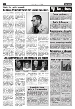 ni, Micaela Oliver, Nohe- recorriendo los pueblos. profesionales con el tución y por nivel. zarán dos talleres en la toria Pérez. Más informa-